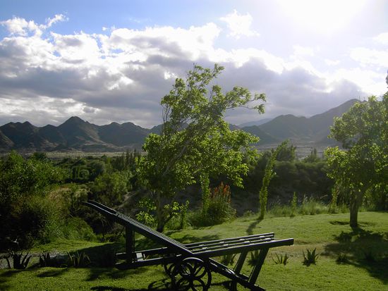 Diese schöne Kulisse lädt doch geradezu ein, wieder ein paar Zeilen zu verfassen Hinter mir befindet sich ein schöner Pool, links neben mir schreibt sich Nicole ein paar Spanischvokabeln auf und rechts sitzt Mario und liest im "Spiegel". Schön ist es hier in der großzügigen Anlage unserer Hacienda in Cachi, einem 1.800 Einwohner fassenden Dorf im andinen Nordwesten Argentiniens.