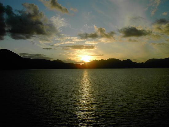 Mit leicht verquollenen Augen, einem steifen Rücken und noch etwas eingerosteten Fingern sitze ich hier in der Schiffs-Bar. Es ist gerade günstig in Ruhe zu schreiben, da fast alle Passagiere einen Samstagmorgen-Ausflug in den abgelegen Ort Puerto Eden unternehmen. Ich genieße die Stille während sich die Leute draußen bei spätherbstlichem Wetter vergnügen. Es wäre die einzige Möglichkeit von der Navimag, unserem Schiff mit dem wir von Puerto Natales 1460 Kilometer nach Puerto Montt schippern, mal kurz runterzukommen. Aber sollen ruhig die anderen den typischen Touristen mimen, der in Scharren einfällt und die Einwohnerzahl eines Dorfes (angeblich um die 200 Menschen) schnell für eine Stunde verdoppelt Die Einheimischen lassen sich den Besuch, der zweimal die Woche hier aufkreuzt, mit einer "Eintrittsgebühr" entlohnen und erhalten so eine kleine Gegenleistung, dass mal wieder unzählige Menschen auf der Jagd nach dem Foto des Jahres sind