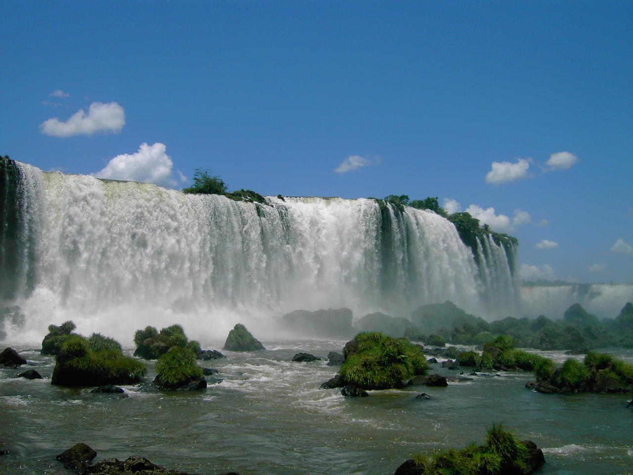 1750 Kubikmeter Wasser stürzen sich dort in der Sekunde bis zu 72 Meter in die Tiefe und faszinierten im ersten Monat des Jahres 2007 über 100.000 Menschen, nur auf der argentinischen Seite. Denn gegenüber des gleichnamigen Flusses Iguazu liegt Brasilien. Nur aus Paraguay kann man diese Wassermengen nicht beobachten, obwohl das Land geografisch nicht recht viel weiter von dem Naturschauspiel entfernet ist, wie seine zwei Nachbarn.
