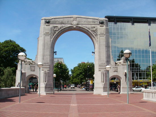 Die Christchurch Cathedral ist Mittelpunkt der Stadt. Die Turmspitze aus Metall verdankt die Kathedrale den vielen Erdbeben, welche die frühere Steinkonstruktion ständig zum Einsturz brachten.