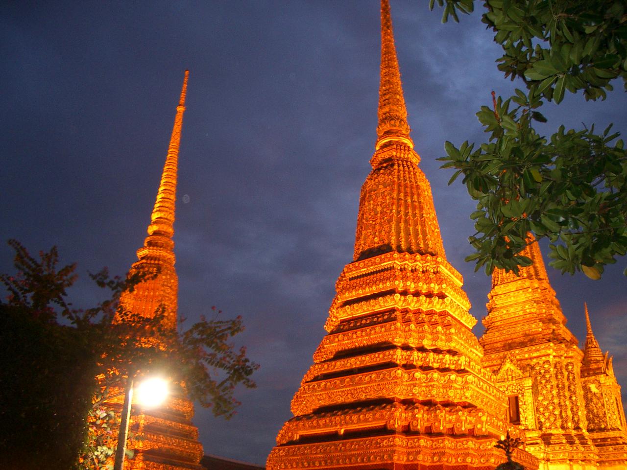 Hat dann doch noch geklappt mit Wat Pho, jedoch erst zur Daemmerung hin und kurz vor Torschluss um 6 pm. Leider konnten wir uns so spaet auch nicht mehr eine der tollen Massagen in der Massageschule dort goennen. (Dank dem Tuk Tuk Luegner) !!!