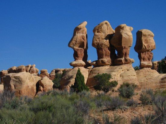 Den Devil's Garden haken wir recht schnell ab. Haut uns nicht wirklich vom Hocker aber wir denken, das liegt eindeutig daran, dass wir die Landschaft mit zu vielen schönen Dingen vergleichen, die wir bereits auf unserer Tour gesehen haben. Ja, besser als der Düsseldorfer Stadtwald ist es immer noch. Wer merkt sich denn da schon wieder die Formulierungen, die ich gestern benutzt habe?