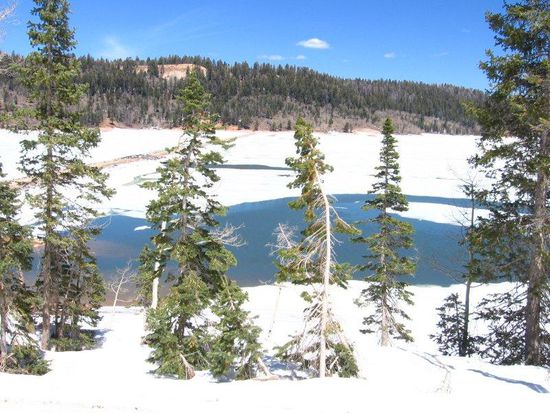 Doch das brauchen wir gar nicht, die schönsten Wintermotive sollen erst noch kommen. Da an den meisten Bäumen noch kein einziges Blatt hängt, fürchten wir schon das schlimmste. Der auf Fotos im Internet so schön leuchtende Navajo Lake vor imposanter grüner Waldkulisse könnte vor den kahlen Bäumen etwas langweilig daher kommen. Aber es kommt noch viel besser: Der See ist zugefroren und tief verschneit. Damit haben wir ja überhaupt nicht gerechnet. Die letzten Tage waren so heiß gewesen. Stets war die kurze Hose immerhin mein Begleiter gewesen und nun das. Tiefschnee!