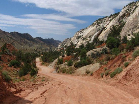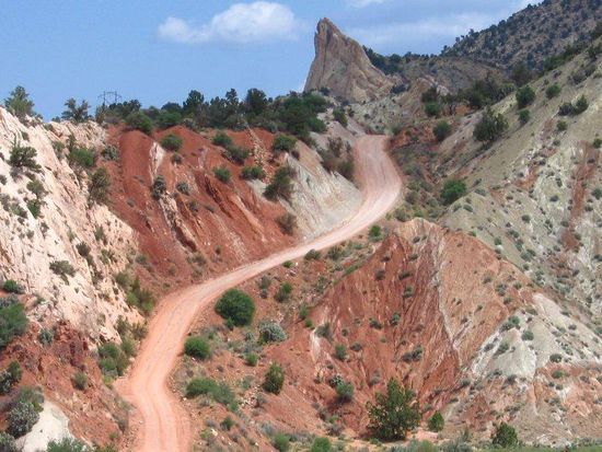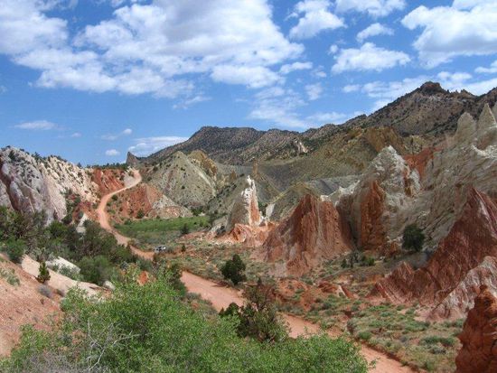 Wir fahren die paar Meter zurück zur Cottonwood Canyon Road und weiter nach Süden. Auf einer Bergkuppe halten wir an und verewigen die Straße. Sieht wirklich toll aus, wie sie sich zwischen den bunten Felsen hindurch ins Tal windet und weiter auf den nächsten Berg hinauf.