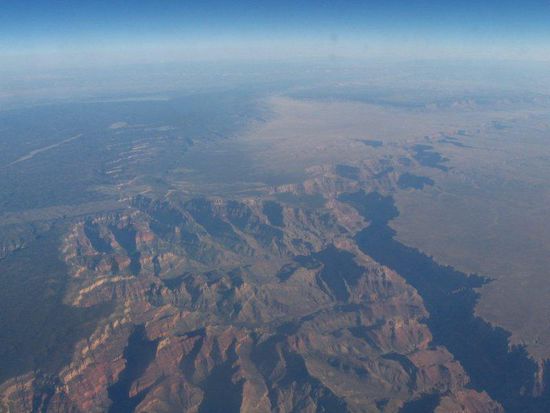 Viel zu schnell müssen wir uns wieder trennen, denn mein Flieger hebt bereits um 6:45 ab. Silke fliegt mit einer anderen Fluggesellschaft und Horst eine andere Route als ich zurück nach Deutschland, so dass ich mich mal wieder alleine beschäftigen darf. Den Start bleibe ich noch wach, denn wann bekommt man schon einmal Las Vegas von oben zu sehen. Danach würde ich mich gerne zum Schlafen begeben, doch wir fliegen anschließend noch über den Hoover Dam und dem Grand Canyon! Erst danach, in den Weiten der Wüste Arizonas verliere ich meine Bezugspunkte und weiß nur noch - nein, ich hoffe - wir sind auf dem Weg nach Osten.
