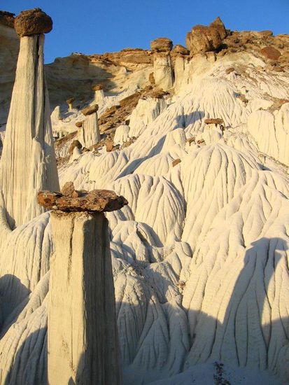 Als wir endlich losmarschieren, ist der Himmel bereits so hell, dass keine Sterne mehr zu sehen sind. In Windeseile steigen wir über den Stacheldrahtzaun, bedenken dabei die weitere Familienplanung und erreichen noch mehr als rechtzeitig die erste Gruppe Hoodoos.