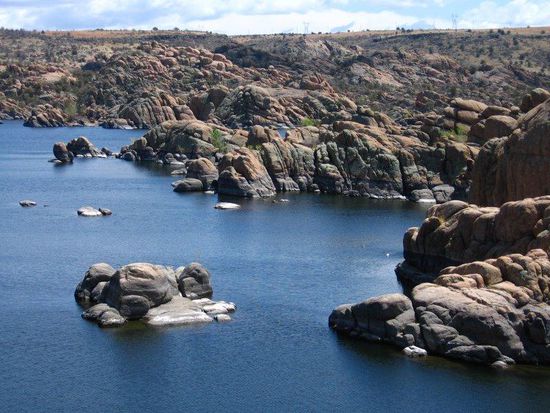 Im Internet war zu lesen, einen richtigen Trail gibt's hier zwar nicht, aber einen inoffiziellen Pfad entlang dem Ufer, der ab und zu über ein paar Felsen geht. Nach dieser Tour zum Staudamm und zurück sind wir aber absolut der Meinung, es handelt sich eher um ein größeres Gekraxel über Felsplatten, das ab und zu über ein paar Meter Weg führt.