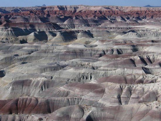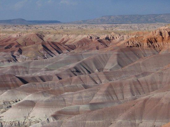 Wo wollen wir heute übernachten? Vorgesehen war Flagstaff, aber der Tag hat noch ein paar Stunden Tageslicht, vielleicht schaffen wir es ja noch bis Winslow und auch noch die nördlich davon gelegene Little Painted Desert. Dann hätten wir morgen etwas mehr Zeit für andere Dinge und könnten zum Beispiel noch den Petrified Forest mitnehmen, ein Plan, der mir besonders gut gefällt, denn wer weiß, wann ich noch mal in diese Gegend komme und die versteinerten Wälder hätte ich doch gerne gesehen.