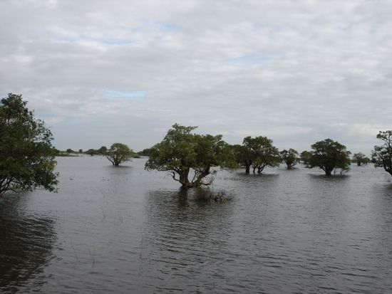 Es sieht zwar auf den Fotos sehr idylisch aus, aber es ist schmutzig, und ueberall liegt Plastik herum, es haengt auch teilweise an den Baeumen. (In der Regenzeit ist ja der Wasserstand viel viel hoeher, und schwaemt den Muell an. Dann kann auch das Boot schneller fahren und braucht statt der 7 Stunden nur 3)