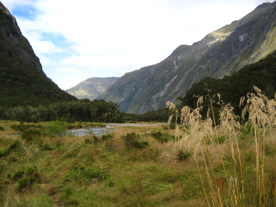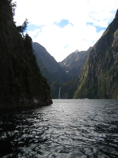 Von Queenstown fuhr ich dann Richtung Milford Sound. Beim Anfang der Bundesstrasse nahm ich noch einen Amerikaner (Oregon) mit. Es gibt einige hier, die per Autostopp reisen. Ich konnte ihn aber nicht sehr weit bringen, weil er woanders hinwollte und ich abzweigen musste. War aber ein sehr netter Kerl und eine angenehme Unterhaltung. Nach der Abzweigung gings dann nach Te Anao, wo die Strasse nach Milford Sound anfaengt. An diesem Punkt schnappte ich auch schon den 2. Autostopper aus Holland auf. Mit dem ich dann auch die Bootsfahrt in Milford Sound machte und den Abend im hiesigen Pub verbrachte.
