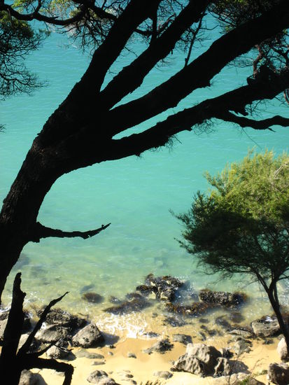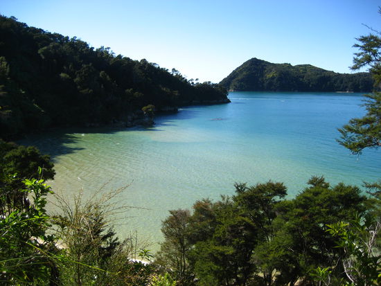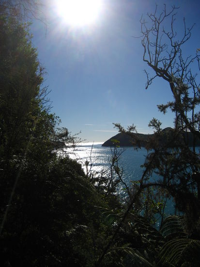 Am naechsten Morgen machte ich mich auf, um zumindest einen Teil des normalerweise an drei Tagen zu bewaeltigenden Trecks an der Kueste des Abel Tasman National Parks zu sehen, und so ging ich die ersten 11km Richtung Norden, genoss eine ausgiebige Mittagspause mit einem Plaeuschchen mit einer Schweizerin am Strand von Anchorage und ging den gleichen Weg wieder zurueck.