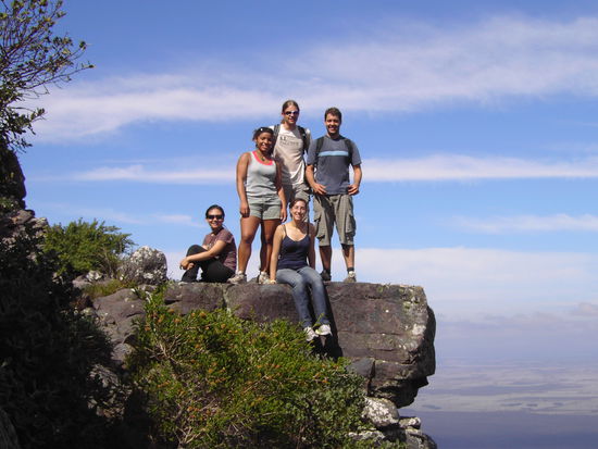 Das alles hat dann dazu geführt das es doch schon recht spät war als wir in der Stirling Range auf dem Campingplatz angekommen sind und unsere Zelte aufgebaut hatten. Wir haben dann noch Nudeln mit Tomatensoße gekocht und sind ziemlich bald schlafen gegangen, zum einen, weil alle recht müde waren und zum anderen weil's ja schon um 18 Uhr dunkel wurde und es auf dem Campingplatz echt nix zu tun gab. Man durfte wegen der Trockenheit auch kein Feuer machen und dann ist es abends doch schon recht frisch geworden. Am nächsten Tag ging es dann auf zu unserer ersten Wanderung auf den 2. höchsten Berg in der Stirling Range den Toolbrunup Peak. Man hätte sich ja denken können, dass das Ganze recht anspruchsvoll wird, wenn für 4 Kilometer 4 Stunden veranschlagt werden, aber so viel Gedanken haben wir uns da nicht gemacht. Der erste Kilometer bestand noch aus einem richtigen Weg, danach war damit aber definitiv Schluss, dann ging es nur noch über irgendwelche Gerölllawinen und Felsen nach oben. War eine ziemliche Kletterei und wenn man nicht so trainiert ist auch ziemlich anstrengend, vor allem da es an dem Tag auch noch recht heiß war. Dafür wurden wir oben aber mit einem wunderschönen Blick über die ganze Stirling Range belohnt. Der Weg nach unten bestand dann mehr aus rutschen und stolpern denn aus laufen, aber am Ende sind alle wieder gut unten angekommen und es gab keine verstauchten Knöchel oder gebrochenen Beine.