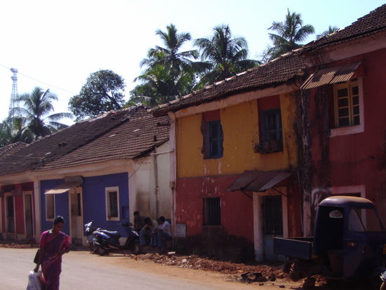 Nachdem wir Hampi erfolgreich besichtigt haben (siehe Kapitel Hampi) duesen wir, mal wieder mit dem Sleeper Bus, nach Panjim, der Hauptstadt Goas. Uns ist zwar schon vorher aufgefallen, dass Goa ziemlich unindisch ist, aber hier bekommen wir es erst richtig zu spueren. Es faengt schon damit an, dass wir in einem superchicken Zimmer mit hohen Decken und Fernseher unterkommen. Nachdem wir uns erstmal von der 12 Stunden Busfahrt erholt haben, machen wir einen Stadtspaziergang. Es gibt hier so gut wie keine Motorrikschas und keine Fahrradrikschas. Die Strassen sind nur maessig befahren, richtig sauber und es gibt Buergersteige. Ueberall zwischen den knallbunt gestrichenen Haeusern sieht man strahlend weisse Kirchen und grosse Gebaeude im Kolonialstil.