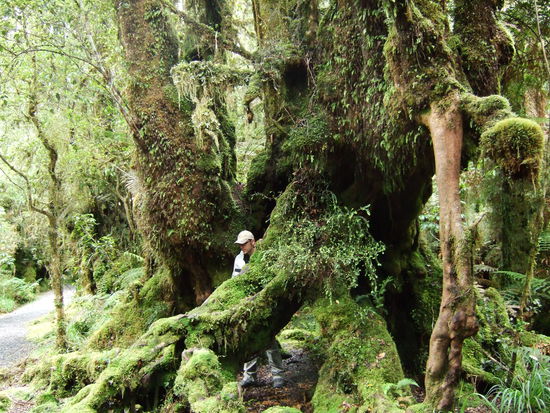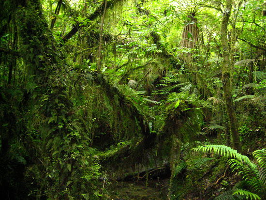 In der Naehe der Fox Getschers haben wir einen kleinen Spatziergang durch den Wald gemacht. Eigenlich waren wir auf der Suche nach einer Gluehwuermchenhoehle, die wir leider nicht finden konnten, aber der Wald an sich war schon Atraktion genug!! Er war noch verwachsener und vermooster als alle anderen Waelder, die wir vorher (und nacher) gesehen haben. Teilweise waren Baeume umgekippt und mit anderen Baeumen durch eine dicke Moosschicht zu einem riesiegen Gebielde verwachsen.