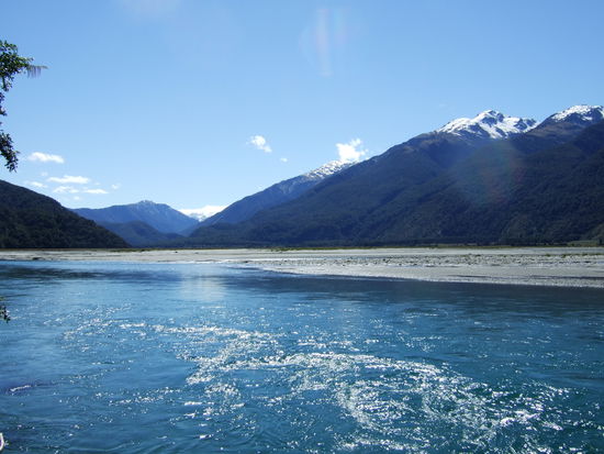 An Neujahr wollten wir uns die Gletscher Franz Joseph und Fox Gletscher angucken. Ihre Riesigen Gletscherzungen reichen bis auf eine Hoehe von 200 bzw 300 Meter n.N. hinunter, was in diesen Breitengraden einzigartig auf der Welt ist.