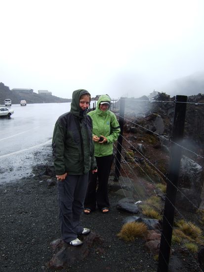 In Wellington angekommen machten wir uns dann am naechsten Tag auf richtung Norden. Als erstes wollten eine entaegige Wanderung machen: den Tongariro Crossing Wanderweg. Diese Weg fuehrt ueber einen dreifachen Vulkan und gilt als einer der schoensten Wandertouren von Neuseeland. Wir buchten drei Plaetze fuer uns in einem Reisebus, der uns zum Startpunkt bringen und uns am Ende wieder abhohlen sollte. Kurz nachden am naechten Morgen der Wecker geklingelt hatte, klingelte leider (oder zum Gluck) das Telefon. Ein Mitarbeiter der Busgesellschaft sagte mir, dass die tour wegen schlechtem Wetter abgesagt worden waere. Mist!! dachten wir, aber ein Blick aus dem Zelt zeigte uns, dass es wohl besser so war: Die Wolken hingen tief und es war etwas am nieseln.