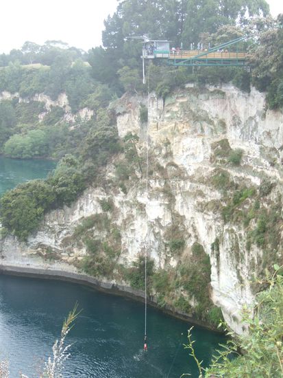 Am naechsten Tag stand Philipp der Sinn nach einem kleinen Adrenalinstoss und beschloss von einer 50 Meter hohen Klippe zu springen. Gluecklicherweise konnte Helena ihn noch dazu uebereden sich wenigstens ein Gummiband dabei um die Fuesse zu binden.