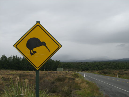 Schon nach einigen Minuten kamen wir an einem Kiwischild vorbei und da es nicht mehr so viele Kiwis gibt, waren auch die Schilder so selten, dass wir sofort aufschrien und anhielten um einige Fotos zu machen.
