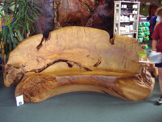 Zunaechst ging es zu einem Lagerverkauf, der ganz viele verschide Produckte aus altem Holz herstellte. Wenn wir das richtig verschtanden haben, ist dieses Holz 40-50 Tausend Jahre alt und war bis jetzt im Waldboden vergraben, wodurch es konseviert wurde. Warum es dabei nicht verrottet ist, hab ich nicht verstanden. Naja, es war auf jeden Fall sehr interessant zu sehen, was die so aus diesen riesigen Baumstaemmen herstellen. Zum Beispiel eine Sitzbank aus einem Baumstamm gefertigt. Sogar ein Treppenhaus von etwa 3-4 Meter Durchmesser konnte man hier bestaunen.