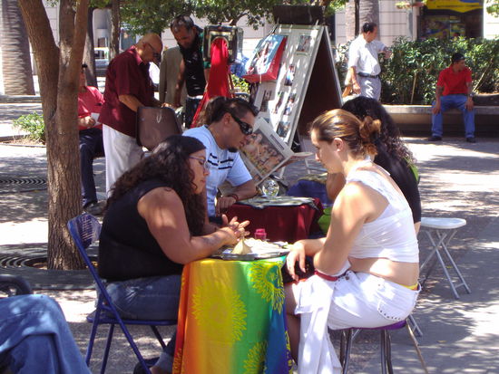 Am naechsten Tag beschliessen wir dem Jetlag den Garraus (oder so aehnlich) zu machen, stehen schon ziemlich freuh auf und lassen uns wieder ein super Pancho-Fruehstueck schmecken. Anschliessend geht er mit uns in die Innenstadt um einen Suedamerikareisefuehrer zu kaufen. Die sind aber leider suuuper teuer hier. Aber pancho ist unermuedlich und schleppt uns von einem Buchladen in den naechsten durch die riesige, vollkommen ueberfuellte Innenstadt. In anbetracht der Geschichten von vorgestern Abend umklammern wir unsere Taschen und folgen ihm mit skeptischen Blick. Schliesslich geben wir auf und kaufen den vollkommen ueberteuerten "Lonely Planet South America" (dopplet so teuer wie in Deutschland!). Nachmittags erkunden wir ein bisschen die Umgebung, schauen uns den Plaza de Armas an, auf dem es nur so von Malern, Wahrsagern und Tauben wimmelt.