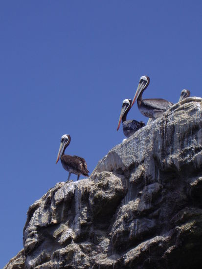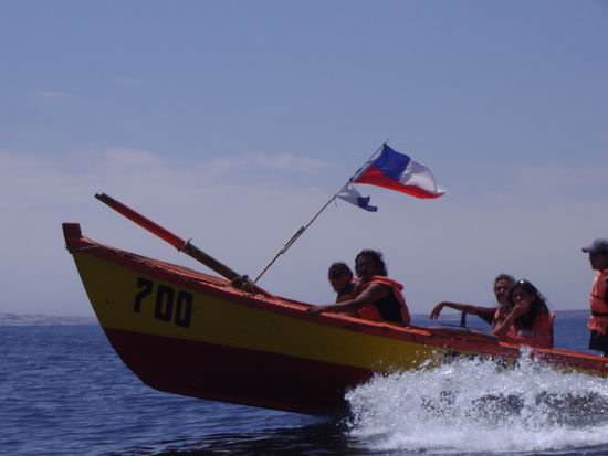 Nach ungefaehr zwei Stunden Fahrt erreichen wir dann die Kueste, wo wir erstmal ziemlich lange auf das Boot warten muessen, dass uns zu den drei Inseln des Humboldt Nationalparks bringen soll. Schliesslich steigen wir und die andern acht Leute unserer kleinen Reisegruppe mit samt dem dicken Guide in so ein Boot und duesen in ca. 20 Minuten zur ersten Insel (Namen hab ich leider vergessen).