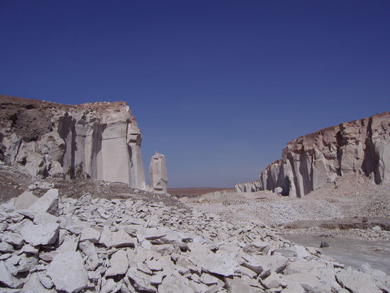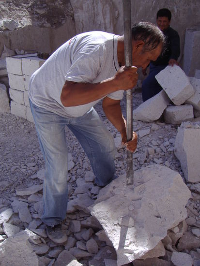 Am naechsten Morgen machen wir die sogenannte "Reality Arequipa Tour", die uns ein Typ aus unserem Hostal empfohlen hat. Zusammen mit unserem Guide fahren wir in den Steinbruch, in dem die weissen Steine abgebaut werde. Das passiert alles per hand, weil dass sehr weiche Gestein (gepresste Vulkanasche) sehr empfindlich ist. Die Steinbrucharbeiter verdienen nur 12 Sol pro Tag und haben sich direkt ab Steinbruch ein eigenes kleines Dorf ohne Strom und fliessendes Wasser eingerichtet. Die Kinder gehen nur zur Grundschule und muessen ab dem 12 Lebensjahr, wenn sie stark genug sind, im Steinbruch mitarbeiten.