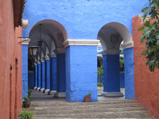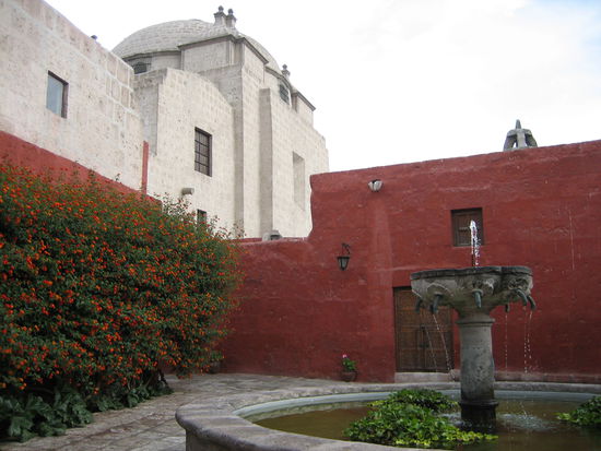 Die Woche vergeht wie im Flug und bald ist unser Sprachkurs auch schon zu ende. An unserem letzten Tag in Arequipa besuchen wir das beruehmte Santa Cathalina Konvent direkt neben unserem Hostal. Der Eintritt ist zwar ziemlich teuer (30 Soles) aber es lohnt sich. Hinter den hohen Mauern verbirgt sich eine eigene kleine Stadt aus den typischen weissen Steinen, zum Teil wunderschoen bunt angemalt.