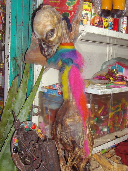 Anschliessend besuchen wir den sogenannten Schahmanengang. Hier kann man getrocknete Lamafoeten, die den Lamakuehen ziemlich lange vor der natuerlichen Geburt aus dem Bauch gezogen werden, kaufen. Es soll Glueck bringen, wenn man ein solches im Garten vergraebt.