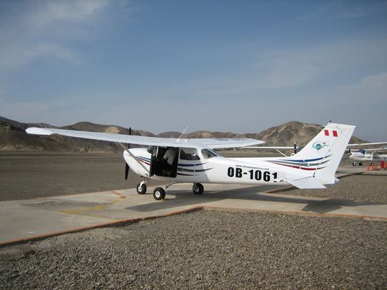 Wieder in Arequipa angekommen schnappen wir uns sofort den naechsten Nachtbus nach Nazca. Obwohl wir mit einer der besseren Busgesellschaften fahren, wird die 14 Stunden Fahrt ueber die Panamericana ein echter Hoellenritt und wir erreichen voellig erschoepft gegen sechs Uhr die kleine Stadt mitten im Nirgends. Der Lonely Planet emphiehlt ein "very basic but clean-" -es Hostal direct gegenueber des Bushofes. Wir wollen nur noch ins Bett und entscheiden uns deswegen dafuer. Allerdings muessen wir mehrmals hinschauen um dasziemlich schick aussehende Hotel als das empfohlene Alegria-Kostal zu identifizieren. Wir warten in der ziemlch schicken Empfangshalle und erwarten kaum, das wir hier ein Zimmer in unserer Preiskategorie bekommen. Aber der kleine Nachtportier bietet uns ein Zimmer fuer 30 Soles an. Wir folgen ihm also. Vorbei gehts an einer schoenen Restaurantterasse und dem noch schoeneren Pool (!). Was dan folgt ist allerdings weniger schoen. Wir verlassen das Hotelparadies und bekommen ein zimmer direct am Parkplatz. Das Zimmer ist zwar wirklich sehr einfach aber sauber und wir duerfen den Pool benutzen. Also schlafen wir erstmal aus und machen uns dann auf die Suche nach dem guenstigsten Anbieter fuer Rundfluege ueber die so genannten Nazca-Lines. Wir werden auch ziemlich schnell fuendig und verbringen den Rest des Tages mit Berrichte schreiben, durch die Strassen schlendern und am Pool rumgammeln, der Ort an sich ist naemlich zwar ganz nett, hat aber wenig zu bieten. Am naechsten Morgen werden wir um acht abgeholt und zu dem kleinen Flughafen etwas ausserhlb von Nazca gefahren. Dort schauen wir uns erstmal einen Film ueber die sagenumwobenen Linien an. Niemand weiss genau wie und warum sie entstanden sind. Die meisten Wissenschaftler glauben, dass es sich hierbei um einen riesigen Sternzeichenkalender handelt. Andere vertreten die ansich, dass die Linien von Ausserirdischen stamen. Diese Theorie ist allerdings weniger populaer. Ploetzlich stuermt ein sehr hektischer kleiner Mann in den Raum, schaltet den Ferseher aus und scheucht uns mit den Worten, wir koennten spaeter weitergucken, zu einem kleinen Flugzeug.