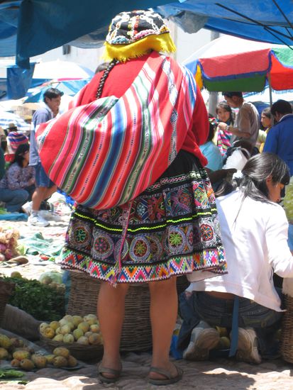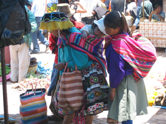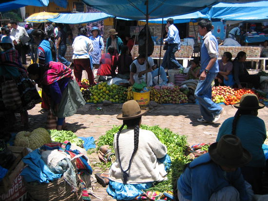 Am naesten Morgen wollten wir uns die Umgebung etwas genauer angucken und sind mit dem Bus nach Pisac gefahren. Hier sind wir zunaechst zum Markt und haben uns das bunte Geschehen etwas betrachtet: