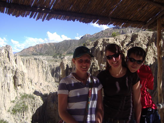 Nach nur 2 1/2 Stunden Busfahr erreiche wir LaPaz. Nachdem das erste Hostel in dem wir nachfragen ausgebucht ist, schwahnt und schreckliches. Sowas ist uns seit Monaten nicht mehr passiert und wir befuerchten schon, dass wir auf der Strasse oder im Hilton uebernachten muessen. Aber so schlimm kommt es nicht. Schon nach kurzer suche finden wir ein ueberteuertes Zimmer ohne Fenster, aber besser als wie nichts. Weil wir mitten im Touriviertel wohnen, gibts auch keine wirklich billigen Restaurants. Also essen wir auch noch einen teuren, aber wirklich fantastischen Salat und fallen danach ziemlich muede ins Bett. Am naechsten Tag versuchen wir Con, die Schwester von Regina, meiner Mitbewohnerin, die grade in LaPaz ein FSJ macht, ausfindig zu machen. Die muss aber den ganzen Tag und die folgende Nacht arbeiten, also verabreden wir uns fuer den naechsten Tag. Es ist super Wetter und so verbringen wir den Tag mit durch-die-Strassen-schlendern und Stadt-erkunden. Am naechsten Tag treffen wir uns gegen Mittag mit Con und ihrem Freund Chris, der sie grade fuer zwei Wochen besucht. Zu viert fahren wir in die bolivianische Version des Valle de la Luna, durch Erosion geformte Felsformationen am Rand des LaPaz-Kessels.