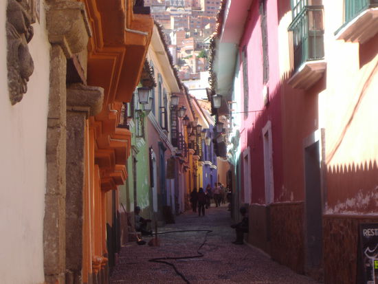 Leider muessen wir anschliessend feststellen, dass es heute, weil Sonntag ist, nicht die ueblichen Busse um 7.00h nach Uyuni gibt sondern nur noch einen, der um halb sechs faehrt und in dem zudem nur noch 2Plaetze frei sind. Wir wollen aber mit Con und Chris zusdammen die Salzwueste erkunden und uns ausserdem erst um halb sieben mit ihnen treffen. Es wird also Zeit fuer einen Plan B. Als die beiden ankommen, beschliessen wir erstmal nach Potosi zu fahren, einer angeblich sehr schoenen Stadt, die auf dem Weg nach Uyuni liegt.