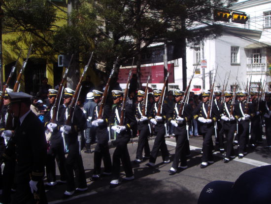 Von Con wissen wir, dass heute der "Dia del mar" ist. Der Tag, an dem die Bolivianer ihr ihre Kueste an die Chilenen verloren haben. Mir ist nicht ganz klar, warum das gefeiert wird, aber jedem das seine. Noch weniger klar ist mir allerdings, warum dieses absolut vom Meer abgeschnitte kleine Land solche unmengen an Matrosen (die wie gesagt vor dem Balkon aufmaschieren) hat...