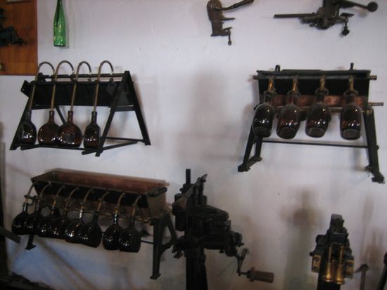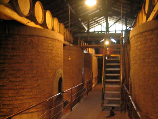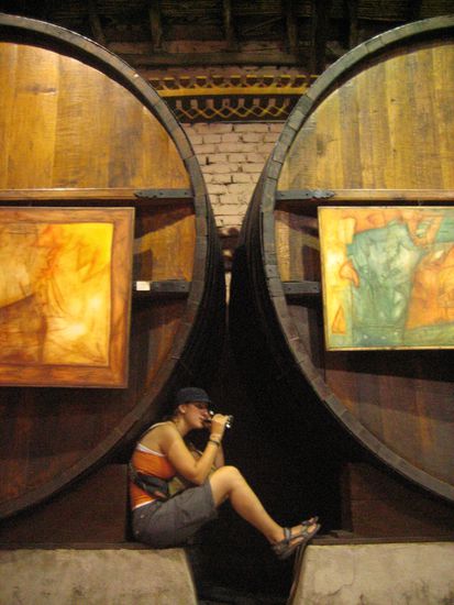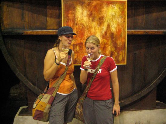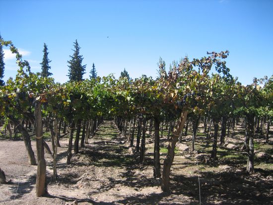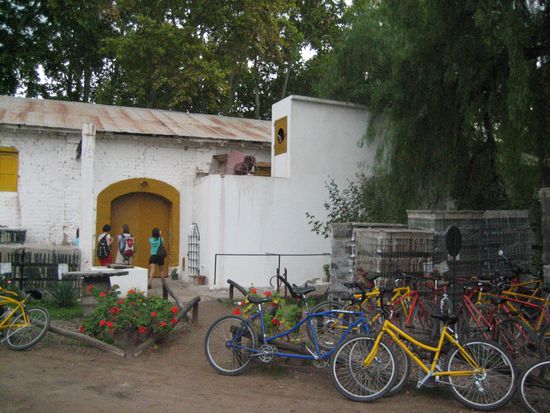 Am nächsten Tag nehmen wir einen ziemlich frühen Bus zu den berühmten Weinbergen von Mendoza. Obwohl der Typ im Reisebüro uns relativ genau erklärt hat, wo wir Fahrräder mieten können, irren wir erstmal Stundenlang durch irgendeinen Ort, bis wir endlich jemanden finden, der uns erklärt, dass wir vollkommen falsch ausgestiegen sind und uns in den richtigen Bus setzt. Hier sind auch sämtliche Fahrgäste inklusive Fahrer sehr freundlich. Wir werden direkt vor der Fahrradvermietung abgesetzt und sämtliche Fahrgäste verabschieden uns lautstark. Und ab jetzt verspricht es auch ein schöner Tag zu werden. Wir bekommen von dem netten Vermieter zwei einigermaßen funktionstüchtige Räder und eine Kartedurch die Region und düsen los. Als erstes halten wir an einem ziemlich großen Weingut das zwar noch in Betrieb ist, aber gleichzeitig als Museum fungiert. Weil es hier uch noch eine ziemlich gute Führung inklusive Weinprobe gibt, erfahren wir ziemlich viel über Traubenernte und die Weinherstellung.