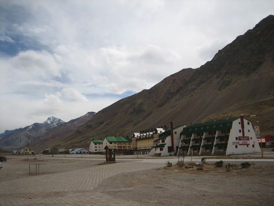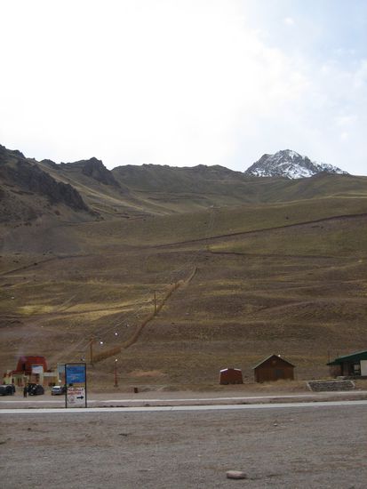 Nach knapp zwei Stunden fahren wir duch den Ort mit der Talstation eines der beliebtesten Skiorte der Anden. Der liegt aber jetzt im Spätsommer ziemlich verlassen da.