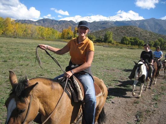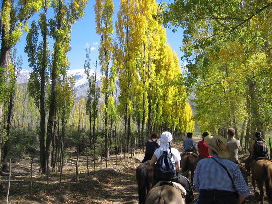 Am nächsten Tag werden wir schon relativ früh abgeholt. Heute wollen wir nämlich den ganzen Tag wie die Gauchos durch die Voranden reiten. Zunächst werden wir erstmal zu einer Art Raftigstartstation gebracht. Wir versuchen den Leuten von der Agentur zu erklären, das wir auf einem Pferd und nicht auf einem Boot reiten wollen. Jaja, ist die gängige Antwort und wir haben durchaus den Verdacht, dass das etwas ähnliches bedeutet wie in Deutschland. Naja, nachdem wir eine gute Stunde gewartet haben, werden wir wieder in einen der Bullis verladen und zu einer kleinen Ranch gebracht. Hier stellt sich raus, dass unsere romatische Vorstellung von einer kleinen Gruppe von vielleicht 5 oder 6 Reitern etwas hochgestochen war. Wir bekommen jeder ein Pferd zugeteilt und dann geht's mit schlappen 25 anderen Reitern und 5 Gauchos in Reih und Glied los. So trotten wir stundenlang durch die wirklich schöne landschaft und dann langsame Tempo hat den Vorteil, dass man die schöne Umgebung und das Gute Wetter richtig genießen kann.