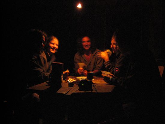 Außer uns waren noch zwei Israelis und ein Argentiner in der Hütte. In der Mitte des Aufendhaltsraumes stand ein Ofen, der gut am heizen war und auf ihm immer eine Kanne mit Wasser, so dass man sich nach Lust und Laune Tee und Kaffee machen konnte, der auch von den Hüttenbesitzern zur Ferfügung gestellt wurde.