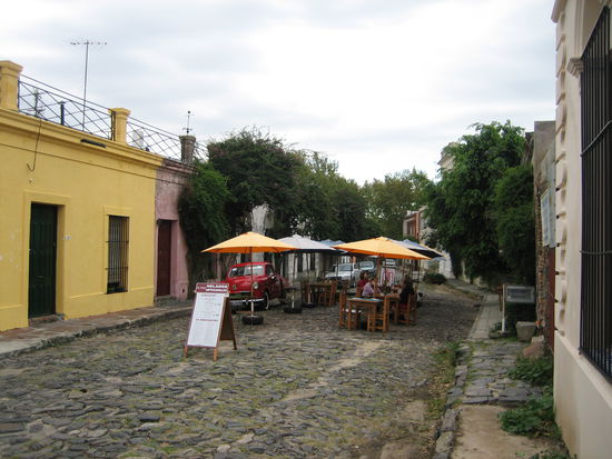 Die letzten beiden Wochen unserer Reise sind angebrochen und wir sind fest entschlossen noch soviel wie möglich in diesen letzten Tagen unterzubringen. Deswegen lassen wir uns, kaum das wir den riesigen Bushof von Buenos Aires erreicht haben mit einem Taxi zu dem Pier der Fähren nach Urugay bringen. Dort ergattern wir zwei Tickets für die nächste Fähre Nach Colonia, einem kleinen Hafenstädtchen von woaus wir mit dem Bus weiter nach Montevideo fahren wollen. Auf der Fähre lernen wir einen Deutschen kennen, der eigentlich grade ein Auslandsemester in Chile macht. Nach einer knappe Stunde bootfahren erreichen wir Urugay und laufen zu Fuß zu dem Hostel unserer Wahl. Dort lernen wir noch einen ziemlich durchgeknallten Engländer kennen, der auch in unserm Zimmer wohnt. Mit den beiden Jungs machen wir uns auf den Weg das kleine Städtchen zu erkunden, das wohl in erster Linie als Urlaubsdomizil für die schönen und Reichen aus Buenos Aires dient und wirklich eine wunderschöne kleine Altstadt zu bieten hat.
