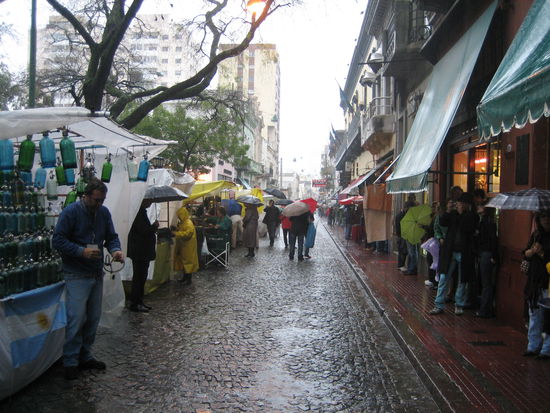 Am nächsten Tag gehen wir morgens auf den Abtiquitätenflohmarkt, der Samstag unter freiem Himmel in SanTelmo stattfindet, und wo eigentlich auch jede Menge Tangotänzer auf der Straße tanzen sollen. Leider regnets heute aber und deswegen bleiben die Tänzer aus und das ganze wird eine ziemlich feuchte Angelegenheit.