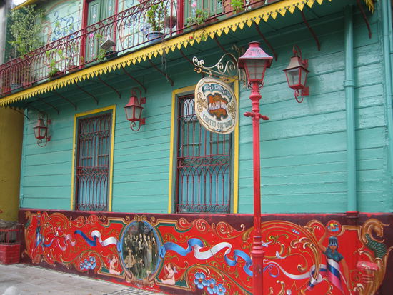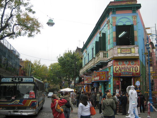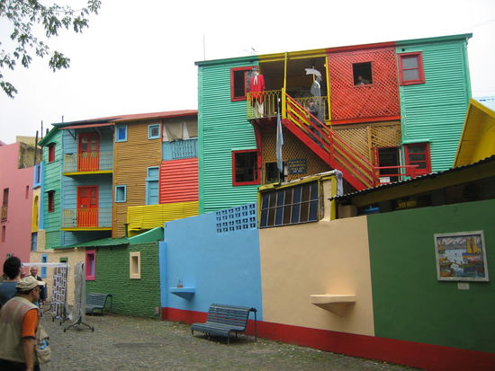 Am nächsten Tag gehen wir morgens mal wieder einkaufen. Diemal zusammen mit Leo. Er zeigt uns die besten CD-Läden der Stadt und beräht uns beim Kauf unserer Mitbringsel (z.B. Tango-CDs). Nachmittags fahren wir mit ihm nach LaBoca, wo auch der berühmte Fussballclub Boca-Juniors herkommt in dem Diego Maradonna groß geworden ist. LaBocca ist eigentlich ein Arbeiterviertel und es ist für Touristen eigentlich nicht empfehlenswert hier durchzuspazieren, weil man oft überfallen wird. Aber mitten drin befindet sich der Caminito (kleiner Weg).