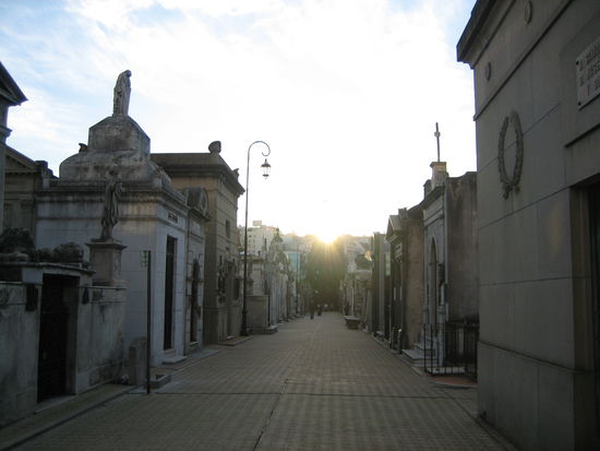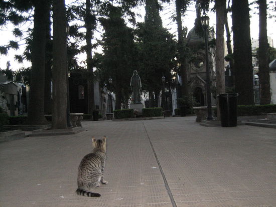 Am nächsten Tag sind wir allein unterwegs. Wir gucken uns noch das typisch italienische Viertel an (obwohl die ganze Stadt ja eigentlich von Italienern geprägt ist), was aber weniger spektakulär ist als wir erwartet hatten und fahren zu einem bekannten Friedhof der Stadt, auf dem die meisten bekannten Persönlichkeiten der Stadt beerdigt sind, unter anderem auch Evita. Die Athmosphäre hier ist, wie es sich gehört, sehr friedlich und irgendwie erhaben. Die Toten sind nicht wie bei uns beerdigt, sondern wurden in kleinen ganz verschieden gestalteten Häuschen bestattet. Ausserdem sträunen auf dem Gelände tausende von Katzen umher.