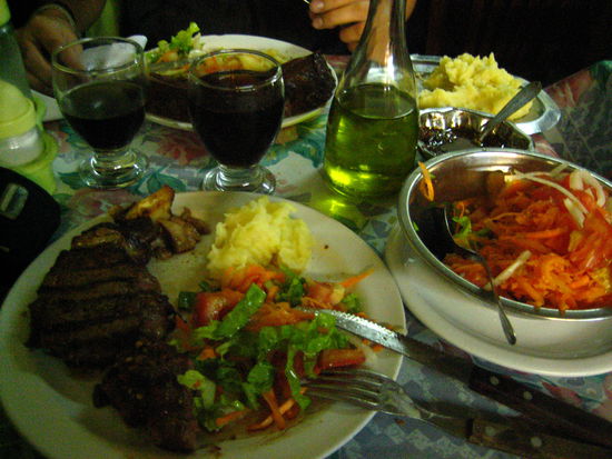 Am Abend besuchen wir eine Parrilla. Das ist eine Grillrestaurant. Hinter der Theke befindet sich meist ein überdiemensional riesiger (bestimmt 1mx2m groß) Grill der vollkommen mit Fleisch überladen ist. Hier kann man total billig das köstlichste gegrillte Rindfleisch essen, dass ich je probiert hab!