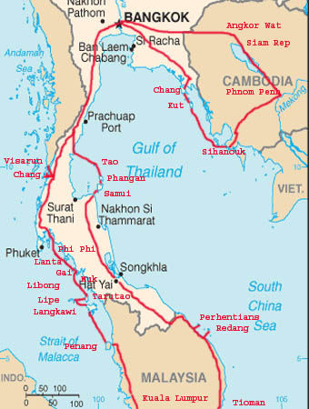 Ausserdem stehen noch die beiden Städte Bangkok und Phnom Penh und die Besichtigung der Angkor Wat Ruinen bai Siam Rep auf dem Plan.