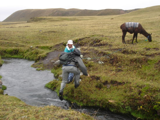 So weiter, nach dem Fruehstueck war geplant, dass es um neun Uhr morgens mit einem Lamatrekking weiter gehen sollte. doch da die Suedamrikaner es nicht so mit der Puenktlichkeit haben, ging es dann halt erst um zehn Uhr los. Eigentlich war dieses Trekking ganz lustig, doch es hat geregnet und zwar so richtig grusig.
