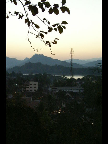 ach ja der phousi ist ein berg mit einem tempel und einer sensationellen rundsicht auf die altstadt und die umliegenden berge. und ein perfekter ort um sonnenuntergaenge zu fotografieren.