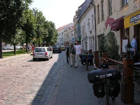 Wir erreichten die Hauptstadt gegen Mittag und tranken zunächst einmal echten Lavazza am Rathausplatz, die Vorzüge der Großstadt müssen hier voll ausgekostet werden. Wir beschlossen erst einmal Essen zu gehen, bevor wir unser Zimmer bezogen, herzhaft litauisch im Zemaiciu Smukle, im Freien selbstverständlich bei Traumwetter. Die Vorspeise, Hering mit Zwiebel-Steinpilz-Soße (8 Lita) war deliziös. Als Hauptgericht eine gigantische Pfanne mit diversen litauischen Kartoffelgerichten (Cepelinai etc.) für 2, die ultimative Kohlenhydratbombe, aber lecker eben (30 Lita).