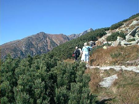 Von der Bergstation führt ein Pfad durch felsiges Gelände noch weiter hoch, über der Baumgrenze sind wir hier schon, dort oben scheint nur noch Fels und Geröll zu sein. Es ist 12 Uhr mittags, windstill und mindestens 20 Grad warm, gerade richtig, um mit nacktem Oberkörper weiter hinaufzusteigen. Das erfordert aber mehr Kondition als auf der Schneekoppe, denn es geht weitere 500 Höhenmeter nach oben bis auf den Strbske Solisko (2301 m ü.M.) , je höher ich komme, desto jünger sind die Leute, die ich hier noch antreffe, eine junge Engländerin schafft es sogar in holländischen Holzpantinen, zumindest den Aufstieg hat sie geschafft....