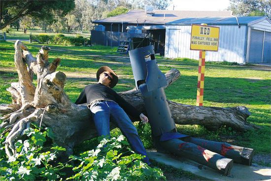 Auch Australien hat seinen eigenen Revolverhelden, der denen des Wilden Westens Amerikas in nichts nach stand. Ned Kelly war der Sohn von irischen Einwanderer und wurde in der Gegend in der wir uns nun befanden geboren. Die Iren hatten es bei den britischen Kolonialherren nicht immer einfach. Ned geriet auf die schiefe Bahn und wurde Bankraeuber und Viehdieb. Von vielen Menschen war er ein Volksheld, der sich gegen die Ungerechtigkeit der britischen Kolonialmacht zur Wehr setzte.