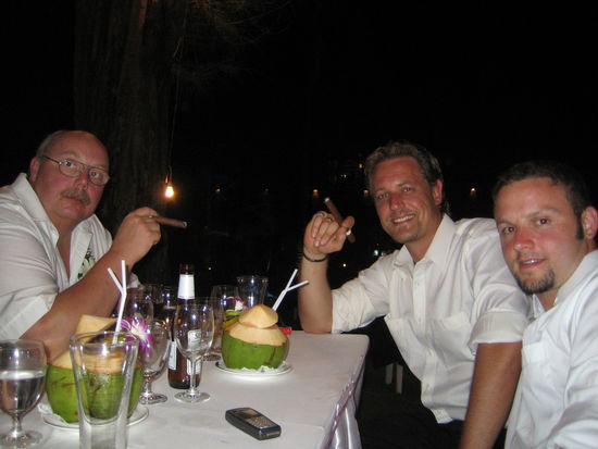 wie Ihr lesen koennt haben wir endlich einen Computer gefunden an dem ich mal wieder Bilder hochladen kann. Der Bericht von der Hochzeit und den fehlenden Tagen kommt morgen, da wir von der Ueberfahrt (wir sind jetzt auf Phi Phi Island) total im Eimer sind. Jetzt erstmal die lang ersehnten Bilder. Leider sind keine Bilder von der Trauung an sich dabei da wir selber keine Fotos machen konnten und die Fotos der anderen nicht zu Verfuegung haben also muesst Ihr euch noch ein bisschen gedulden ((((((