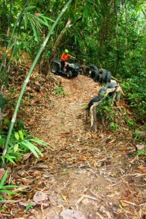 Der Tourguide wies uns dann in dem Umgang mit den Quads ein, wobei sehr viel Wert auf Sicherheit gelegt wurde. Nach 20 minütiger Testfahrt über Stock und Stein auf dem Übungsgelände ging es dann raus in die freie Natur, wo wir dann sprichwörtlich über Riesen Stöcke und Steine fuhren. Nach anfänglichen langsameren Fahrten im Dschungel wo es größten Teil steil bergauf und bergab ging kamen wir dann später in freieres Gelände wo wir die Quads auch and ihr Belastungsgrenze bringen konnten. Dort fuhren wir zeitweise über 50 km durch Schilffelder, sandige Pisten und durch Flüsse. Mit zunehmender Dauer wurden wir sicherer und der Spaßfaktor stieg immens an. So kamen wir auch, das ein oder andermal von der Strecke ab. Zum Abschluss fuhren wir dann wieder über Asphaltierte Straßen wo wir Spitzengeschwindigkeiten von bis zu 80 km/h erreichten. Grade als es anfing richtig Spaß zu machen mussten wir nach 2,5 Stunden die Quads gegen den Van eintauschen und uns auf den Heimweg machen.